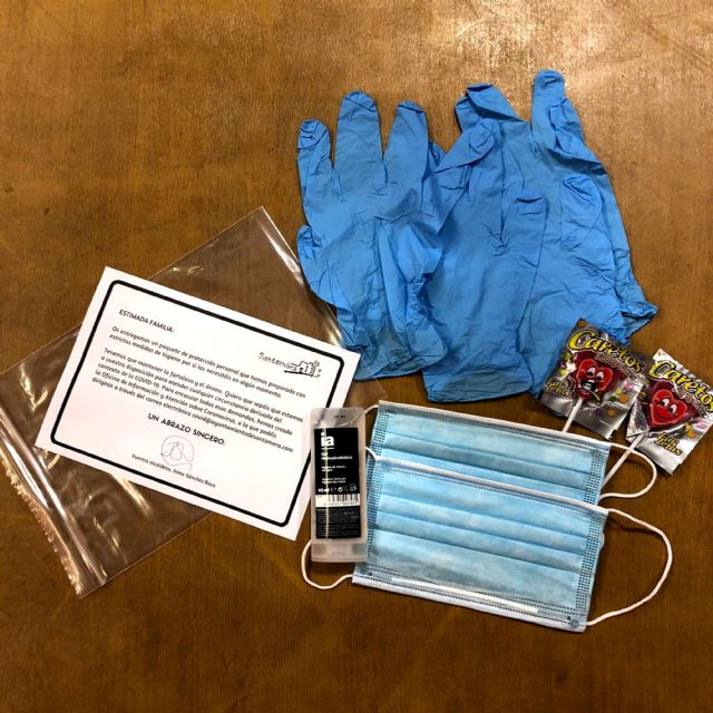 Los kits incluyen dos mascarillas, dos pares de guantes y un gel hidroalcohólico, además de dos piruletas para los pequeños
