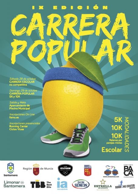 La Concejalía de Deportes de Santomera y el Club Atletismo Santomera organizan la IX Carrera Popular del municipio, el domingo 29 de octubre, mientras el sábado 28 tendrá lugar la prueba escolar